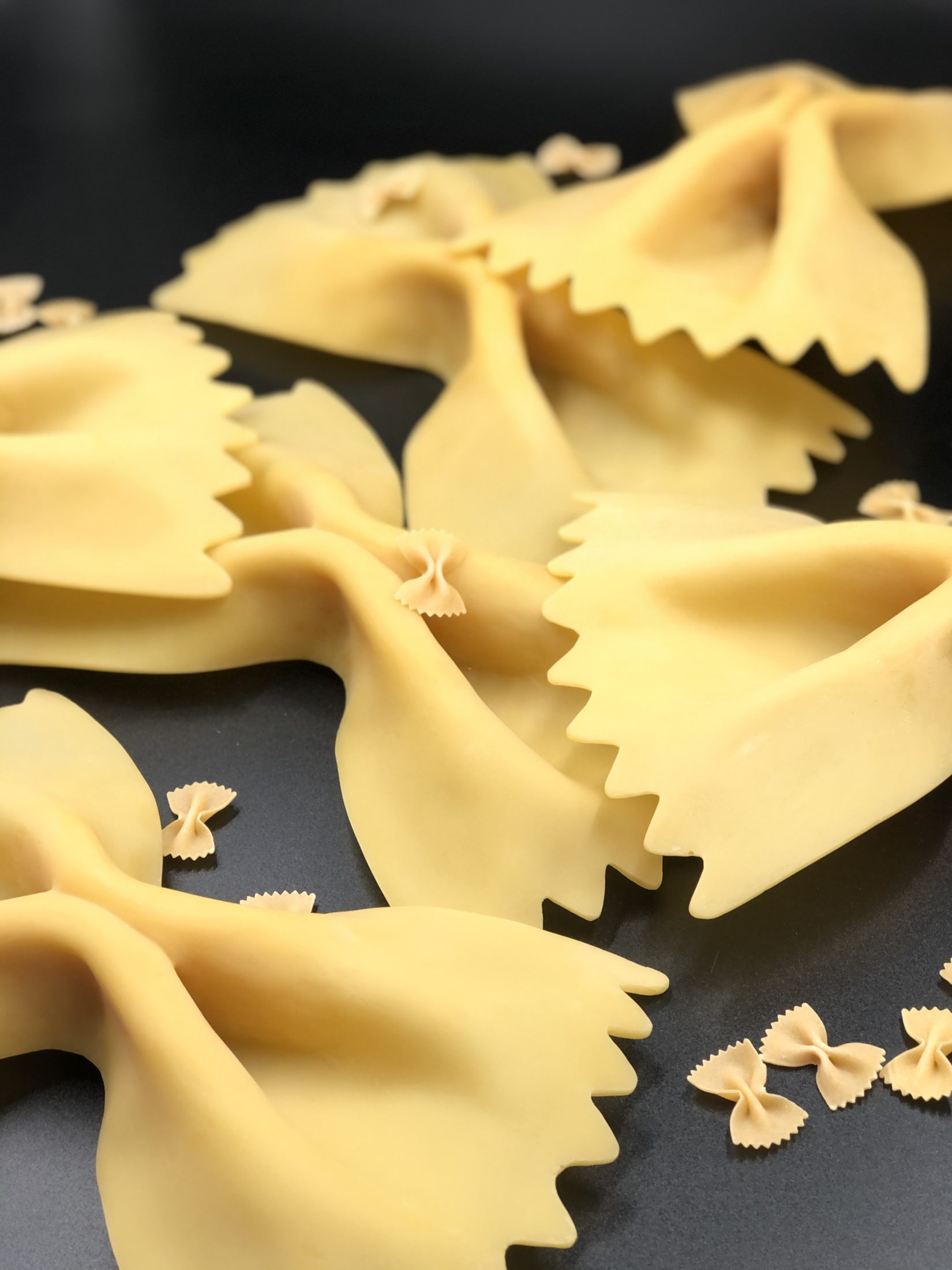 sculptures de pâtes farfalle surdimensionnées en résine